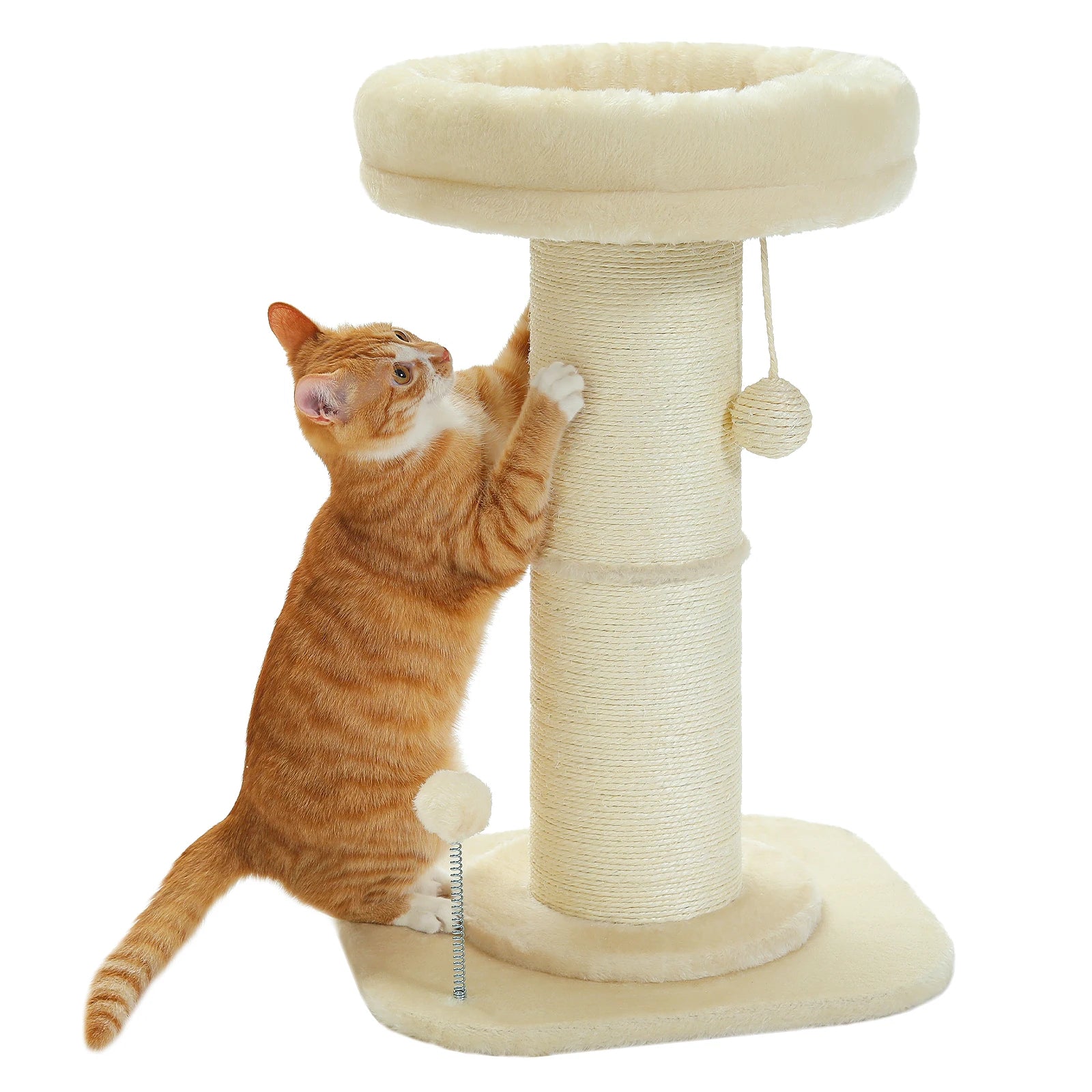 - Two included balls—a hanging sisal ball and a spring ball—provide interactive play that keeps your cat curious and active.