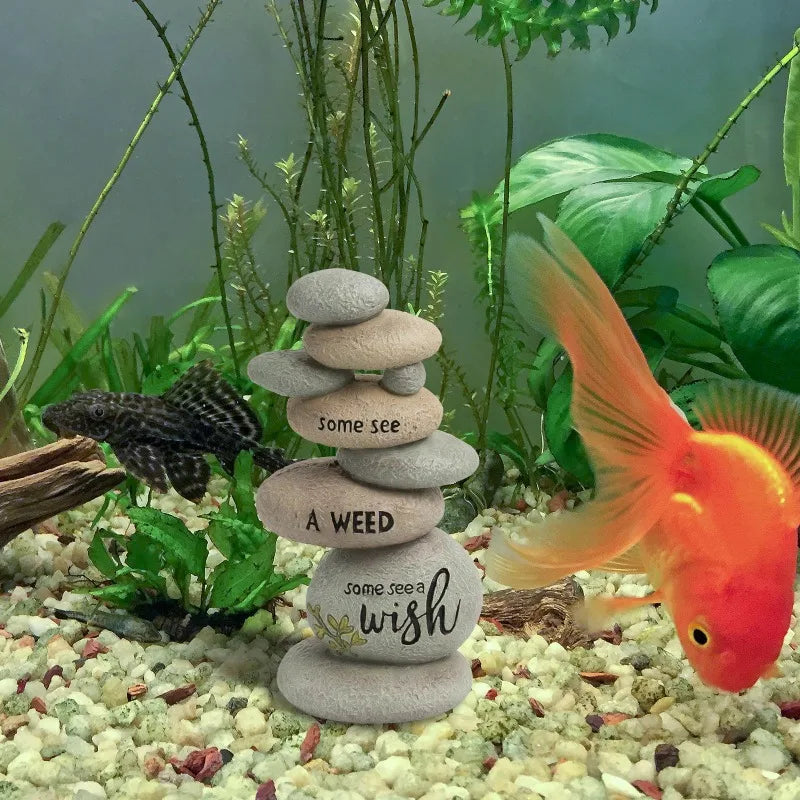 Experience tranquility in any space with the Hign-concerned Resin Cairn Stones Zen Garden Decor, a graceful blend of whimsy and wisdom. This unique sculpture stacks 9 stones into a calming cairn, inscribed with the phrase some see a weed, some see a wish, reminding you that every perspective shapes reality.