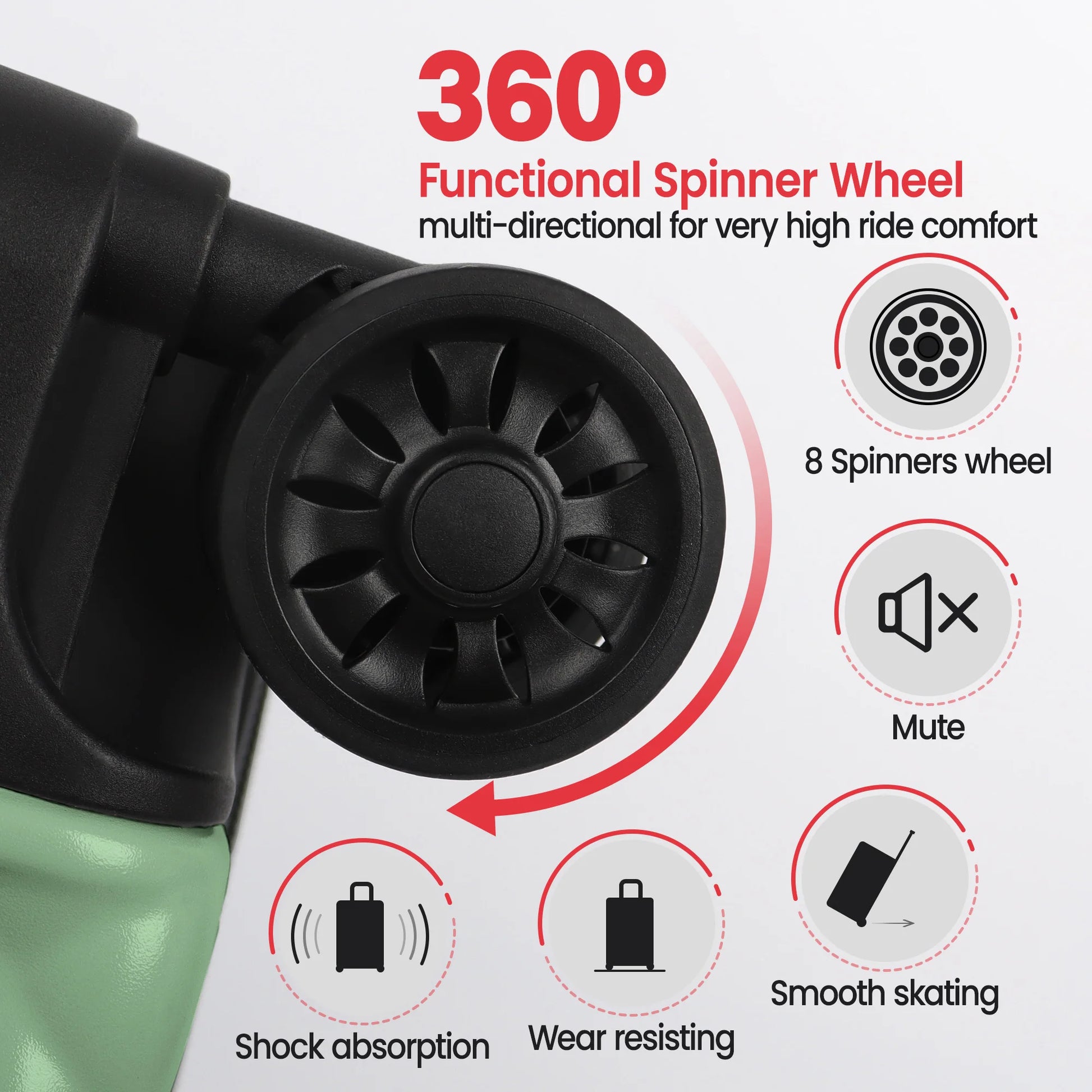 - Quiet four-spinner wheels and a three-stage telescoping handle deliver effortless mobility on any surface.