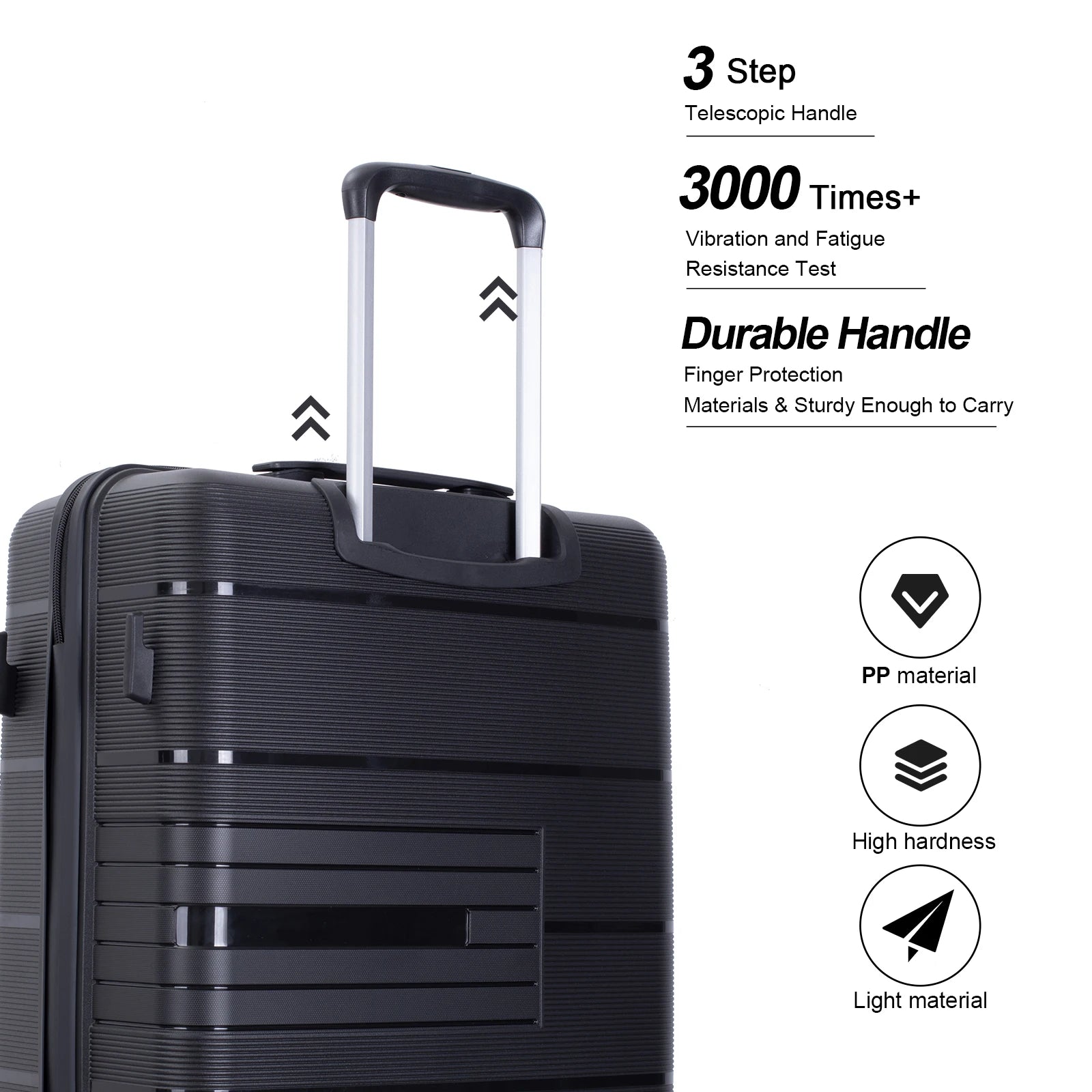 Travelhouse Hardshell Suitcase PP Luggage Sets — a lightweight, durable three-piece suitcase set designed for modern travelers. Crafted from high-quality PP material, these hardside suitcases resist impact while keeping weight to a minimum, so you can pack more without sacrificing maneuverability.